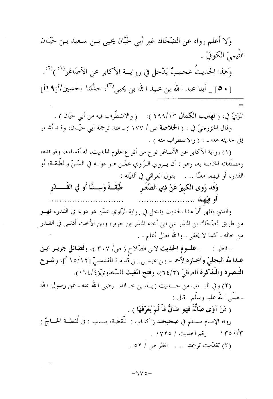 انظر: علوم الحديث لابن الصّلاح (ص/307) ، وفضائل جرير ابن عبد الله البجليّ وأخباره لأحمد بن عيسى بن قُدامة المقدسيّ [12/15 أ] ، وشرح التّبصرة والتّذكرة للعراقيّ (3/64) ، وفتح المغيث للسّخاويّ (4/164) .