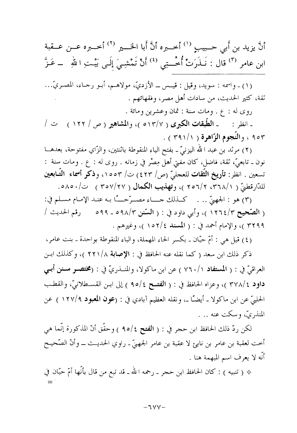 لكن ردّ ذلك الحافظ ابن حجر في: (الفتح 4/95) وحقّق أنّ المذكورة إنّما هي أخت لعقبة بن عامر بن نابئ لا عقبة بن عامر الجهنيّ راوي الحديث وأنّ الصّحيح أنّه لا يعرف اسم المبهمة هنا.