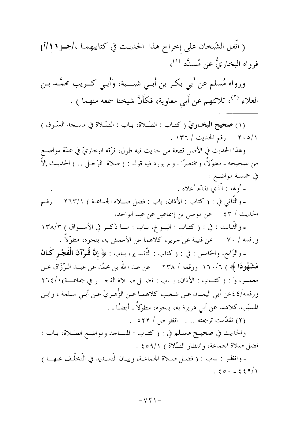 وانظر: باب: (فضل صلاة الجماعة، وبيان التّشديد في التّخلّف عنها) 1/449 450.