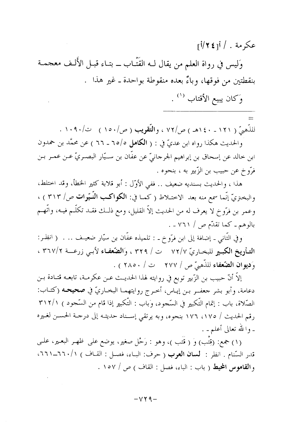 وَليس فِي رُوَاةِ الْعِلْمِ مَنْ يُقَالُ لَهُ القَتَّاب بِتَاءٍ قَبْلَ الأَلف مُعَجَّمَةٌ بِنُقْطَتَيْنِ مِنْ فَوْقِهَا، وباءٌ بَعْدَهُ مَنْقُوطَةٌ بِوَاحِدَةٍ غَيْرَ هذا.