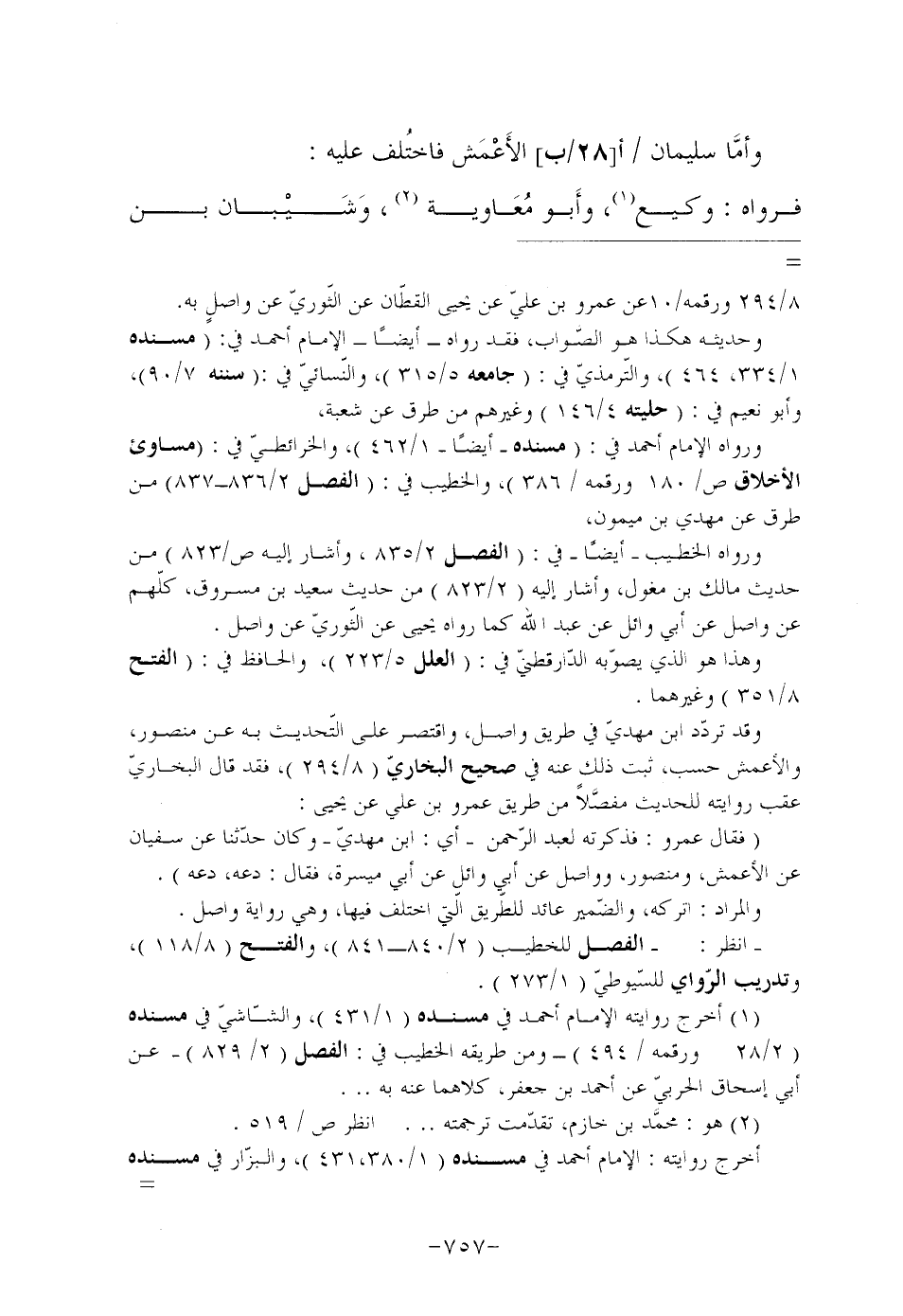 وأمَّا سليمان/ (أ [28/ب] ) الأَعْمَش فاختُلف عَلَيْهِ: