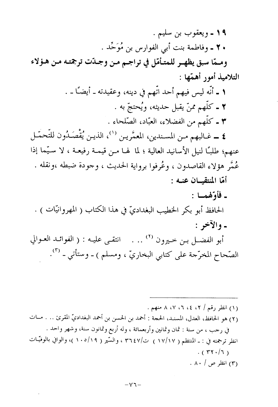 - أبو الفضل بن خيرون (¬2) ... انتقى عليه: (الفوائد العوالي الصّحاح المخرّجة على كتابي البخاريّ، ومسلم) وستأتي (¬3) .