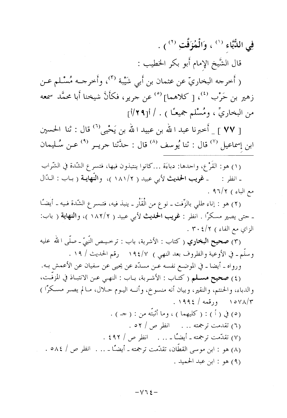 (¬4) صحيح مسلم (كتاب: الأشربة، باب: النهي عن الانتباذ في المزفّت، والدباء، والحنتم، والنقير، وبيان أنه منسوخ، وأنه اليوم حلال، مالم يصر مسكرًا) 3/1578 ورقمه/1994.
