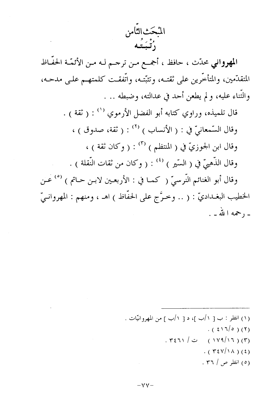المهرواني محدّث، حافظ، أجمع من ترجم له من الأئمّة الحفّاظ المتقدّمين، والمتأخّرين على ثقته، وتثبّته، واتّفقت كلمتهم على مدحه، والثّناء عليه، ولم يطعن أحد في عدالته، وضبطه ...