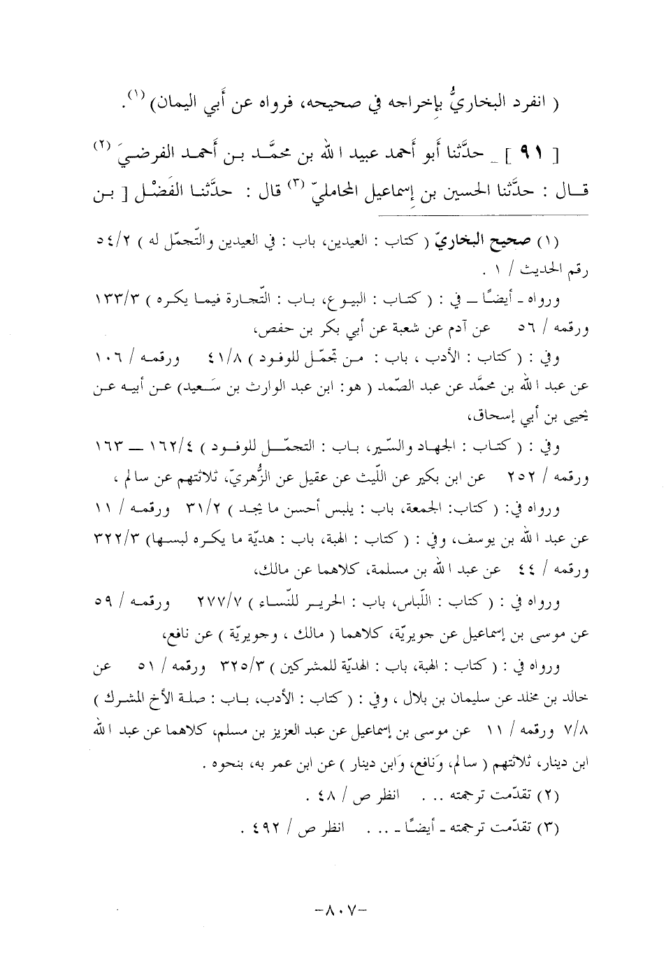 وفي: (كتاب: الأدب، باب: من تجمّل للوفود) 8/41 ورقمه/106 عن عبد الله بن محمَّد عن عبد الصّمد (هو: ابن عبد الوارث بن سَعيد) عن أبيه عن يحيى بن أبي إسحاق،