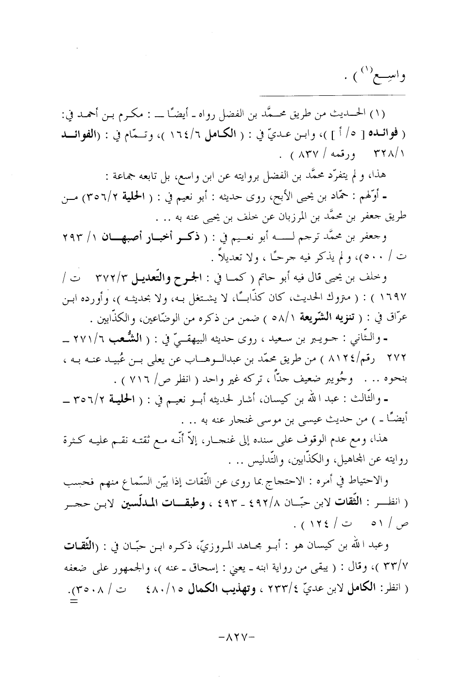 هذا، ولم يتفرّد محمَّد بن الفضل بروايته عن ابن واسع، بل تابعه جماعة: