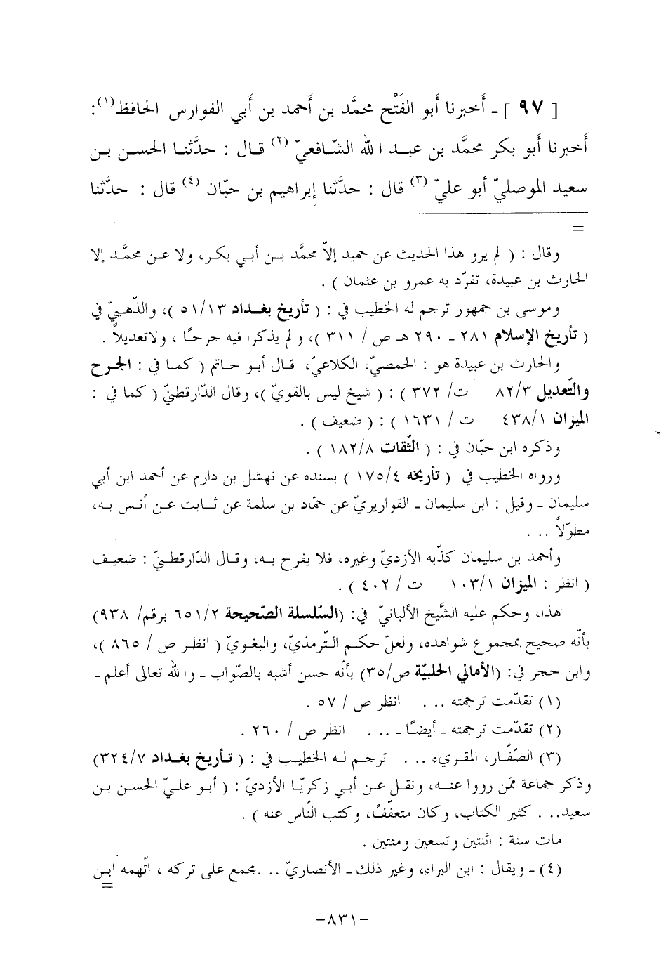 [97] أَخبرنا أَبو الفَتْح محمَّد بْنُ أَحمد بْنِ أَبي الْفَوَارِسِ الْحَافِظُ (¬1) : أَخبرنا أَبو بَكْرٍ محمَّد بْنُ عَبْدِ اللَّهِ الشَّافِعِيُّ (¬2) قَالَ: حدَّثنا الْحَسَنُ بْنُ سَعِيدٍ الْمَوْصِلِيُّ أَبُو عَلِيٍّ (¬3) قَالَ: حدَّثنا إِبراهيم بْنُ حبّان (¬4) قال: حدَّثنا
