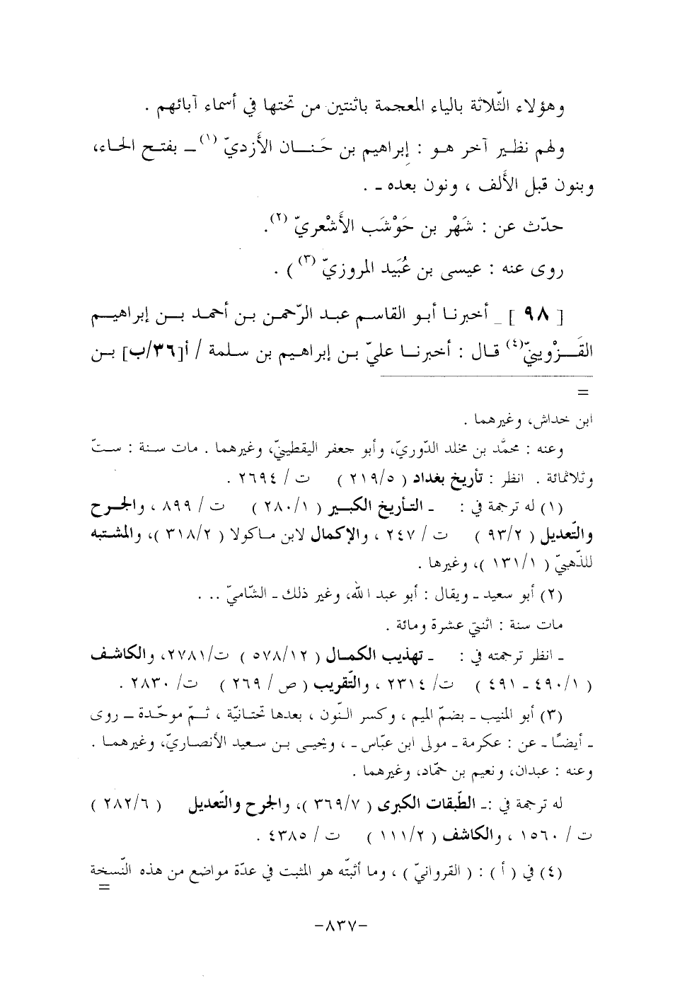 (¬1) له ترجمة في: التأريخ الكبير (1/280) ت/899، والجرح والتّعديل (2/93) ت/247، والإكمال لابن ماكولا (2/318) ، والمشتبه للذّهبيّ (1/131) ، وغيرها.