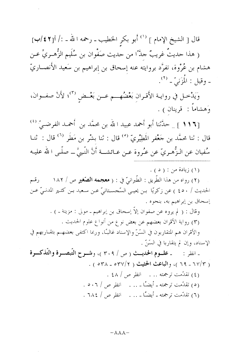 قَالَ [الشَّيْخُ الْإِمَامُ] (¬1) أَبو بكرٍ الخطيب رحمه الله:/أ [42/ب] "هَذَا حديثٌ غريبٌ جِدًَّا مِنْ حَدِيثِ صَفْوان بْنِ سُلَيم الزُّهريِّ عَنْ هِشَامِ بْنِ عُرْوة، تفرَّد بِرِوَايَتِهِ عَنْهُ إِسحاق بْنُ إِبراهيم بْنِ سَعيد الأَنصاريّ وَقِيلَ: المُزَنيّ (¬2) .