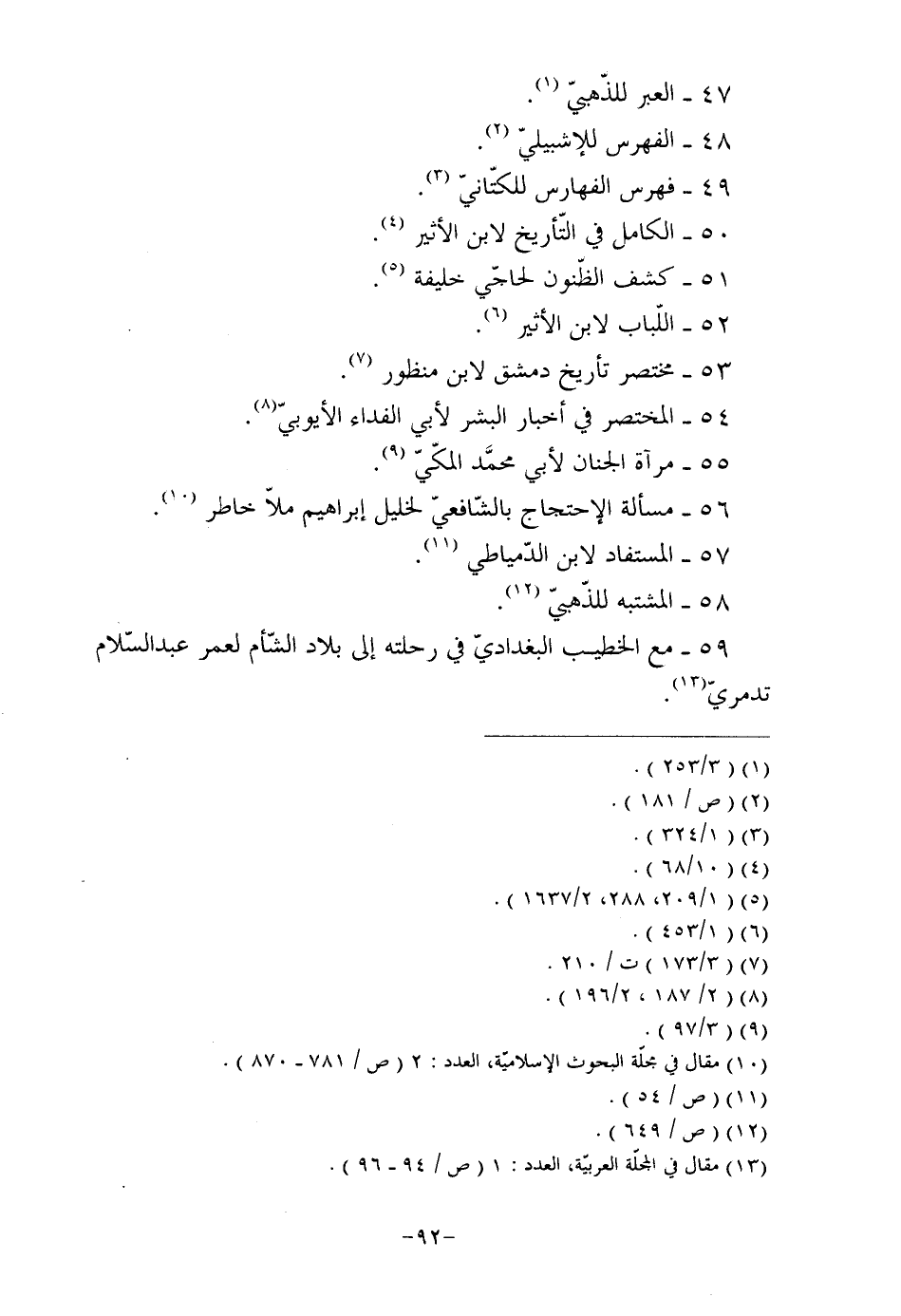 52- اللّباب لابن الأثير (¬6) .53- مختصر تأريخ دمشق لابن منظور (¬7) .