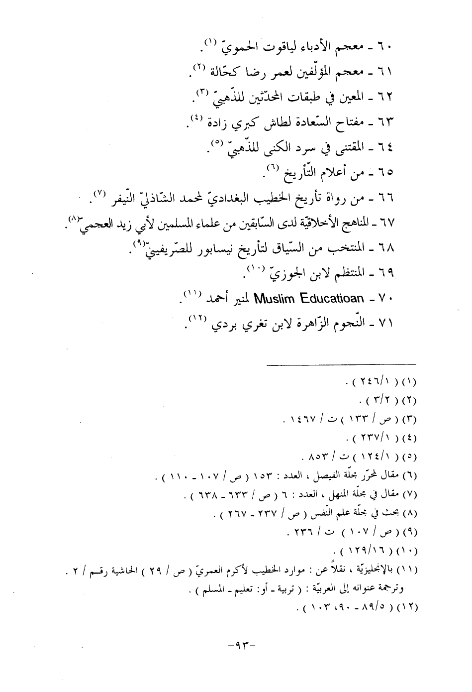 (¬11) بالإنجليزيّة، نقلاً عن: موارد الخطيب لأكرم العمريّ (ص/29) الحاشية رقم/2. وترجمة عنوانه إلى العربيّة: (تربية أو: تعليم المسلم) .