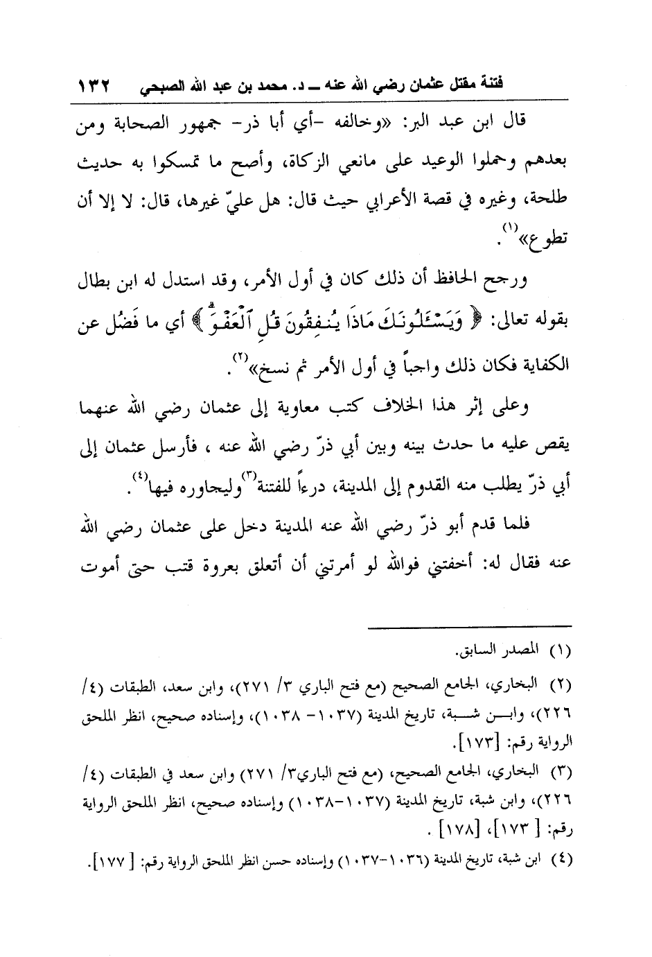 3 البخاري، الجامع الصحيح، (مع فتح الباري3/ 271 وابن سعد في الطبقات (4/226) ، وابن شبة، تاريخ المدينة (1037-1038) وإسناده صحيح، انظر الملحق الرواية رقم: [173] ، [178] .