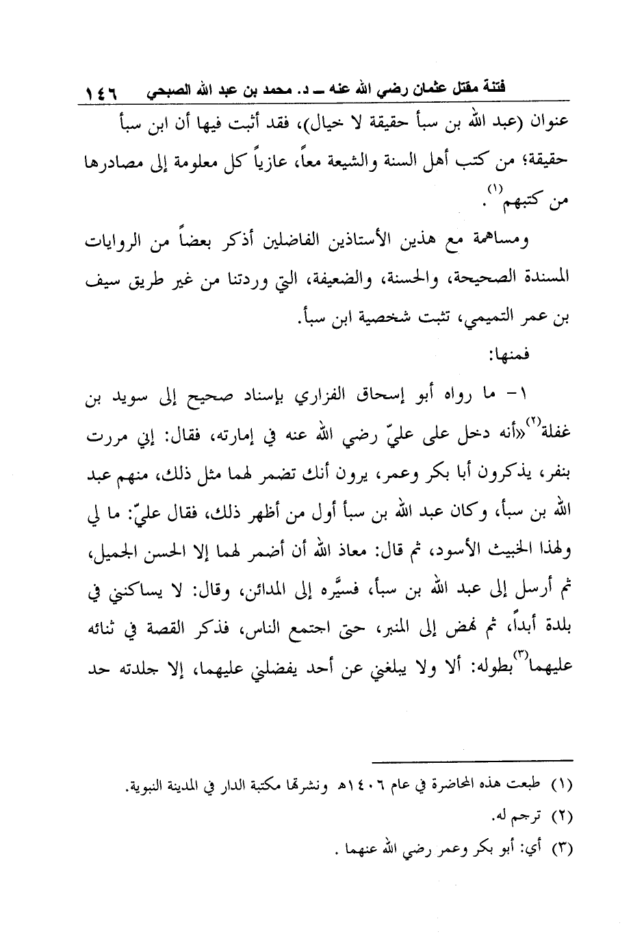1 طبعت هذه المحاضرة في عام 1406? ونشرتها مكتبة الدار في المدينة النبوية.
