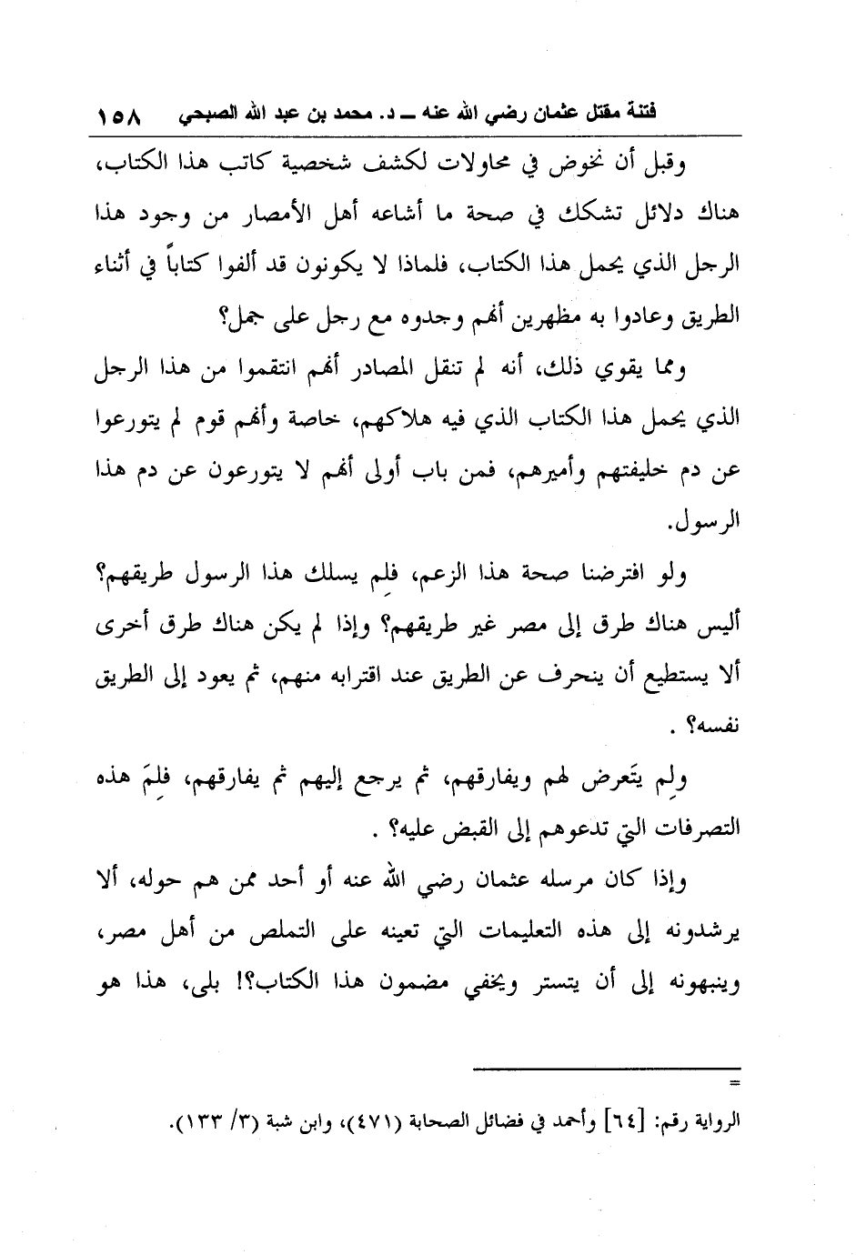 وإذا كان مرسله عثمان رضي الله عنه أو أحد ممن هم حوله، ألا يرشدونه إلى هذه التعليمات التي تعينه على التملص من أهل مصر، وينبهونه إلى أن يتستر ويخفي مضمون هذا الكتاب؟! بلى، هذا هو