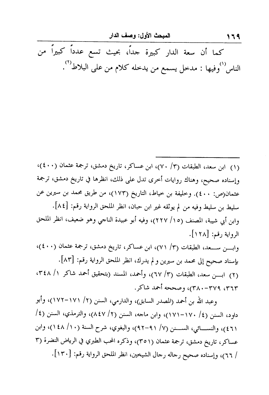 كما أن سعة الدار كبيرة جداً، بحيث تسع عدداً كبيراً من الناس1 وفيها: مدخل يسمع من يدخله كلام من على البلاط2.