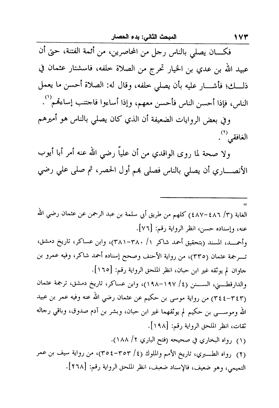 ولا صحة لما روى الواقدي من أن علياً رضي الله عنه أمر أبا أيوب الأنصاري أن يصلي بالناس فصلى بهم أول الحصر، ثم صلى علي رضي