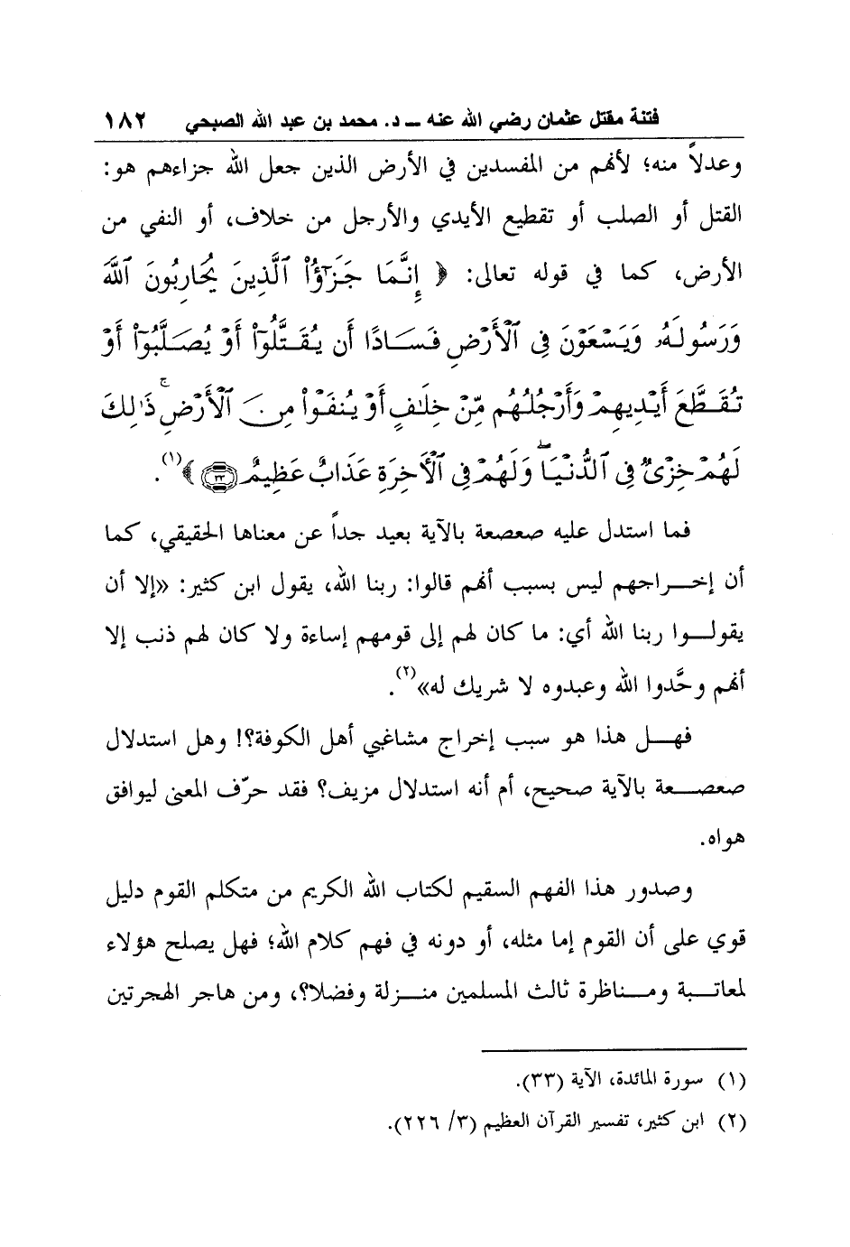 1 سورة المائدة، الآية (33) .