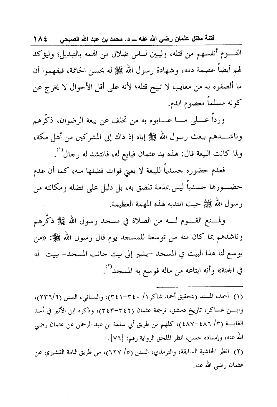 2 انظر الحاشية السابقة، والترمذي، السنن (5/ 627) ، من طريق ثمامة القشيري عن عثمان رضي الله عنه.