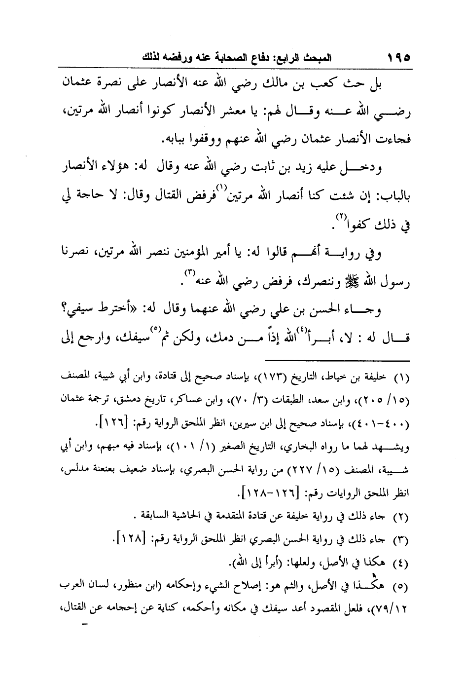 1 خليفة بن خياط، التاريخ (173) ، بإسناد صحيح إلى قتادة، وابن أبي شيبة، المصنف (15/ 205) ، وابن سعد، الطبقات (3/ 70) ، وابن عساكر، تاريخ دمشق، ترجمة عثمان (400-401) ، بإسناد صحيح إلى ابن سيرين، انظر الملحق الرواية رقم: [126] .