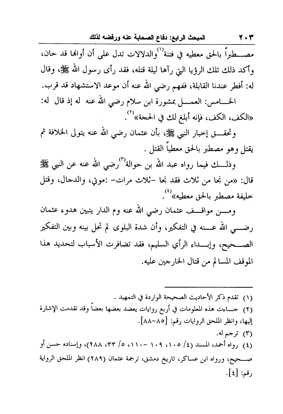 4 رواه أحمد، المسند (4/ 105، 109 -110، 5/ 33، 288) ، وإسناده حسن أو صحيح، ورواه ابن عساكر، تاريخ دمشق، ترجمة عثمان (289) انظر الملحق الرواية رقم: [4] .