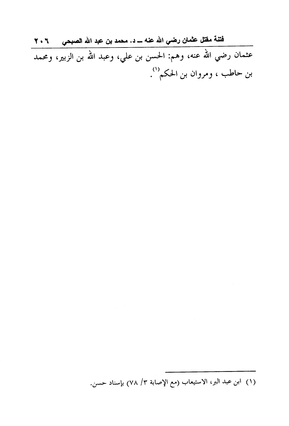 عثمان رضي الله عنه، وهم: الحسن بن علي، وعبد الله بن الزبير، ومحمد بن حاطب، ومروان بن الحكم1.