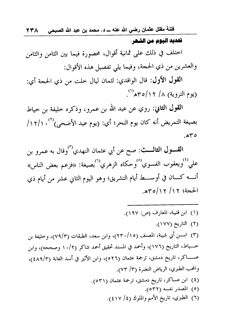 القول الثاني: روي عن عبد الله بن عمرو، وذكره خليفة بن خياط بصيغة التمريض أنه كان يوم النحر؛ أي: (يوم عيد الأضحى) 2 10/12/35?.