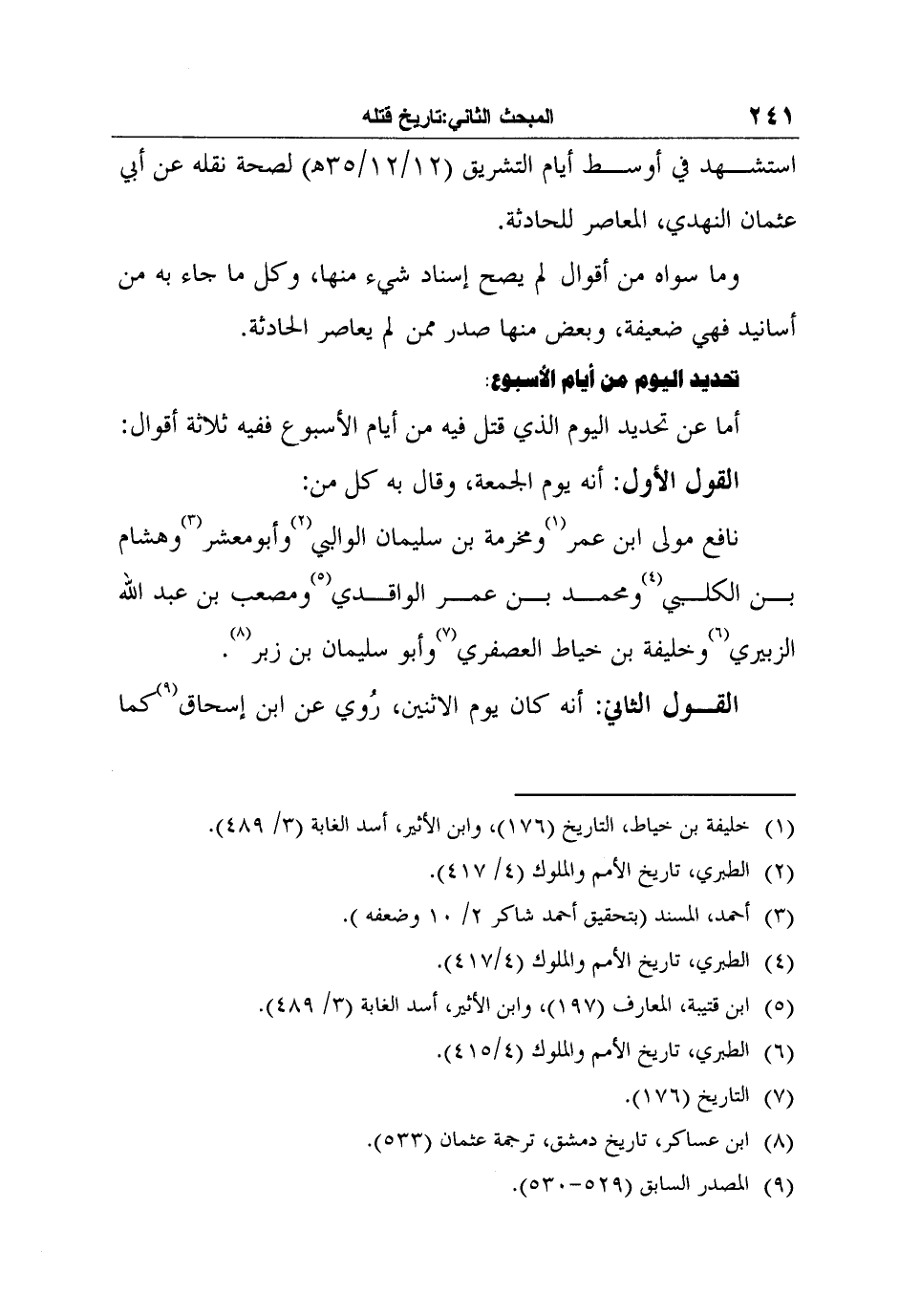 أما عن تحديد اليوم الذي قتل فيه من أيام الأسبوع ففيه ثلاثة أقوال: