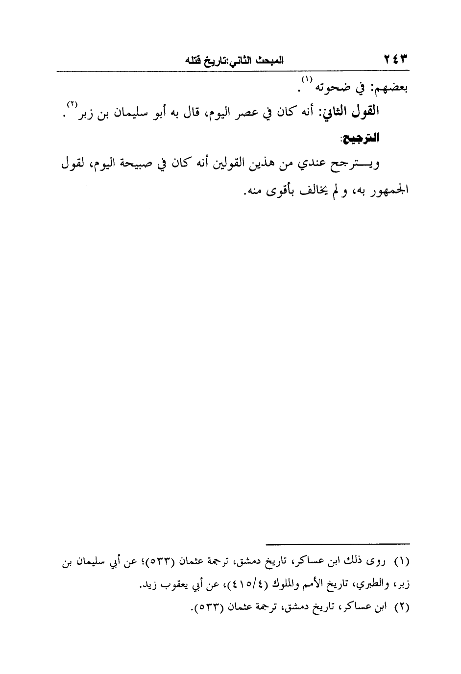 2 ابن عساكر، تاريخ دمشق، ترجمة عثمان (533) .