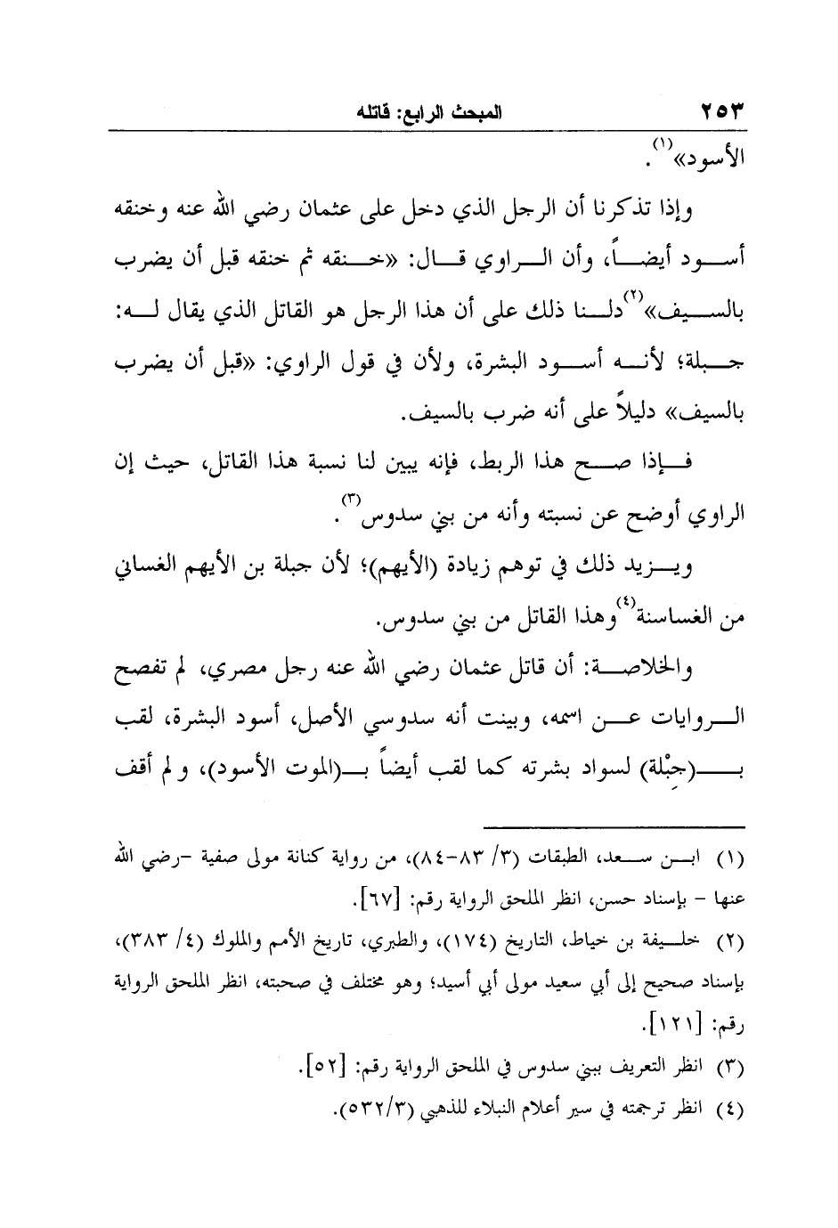 فإذا صح هذا الربط، فإنه يبين لنا نسبة هذا القاتل، حيث إن الراوي أوضح عن نسبته وأنه من بني سدوس3.