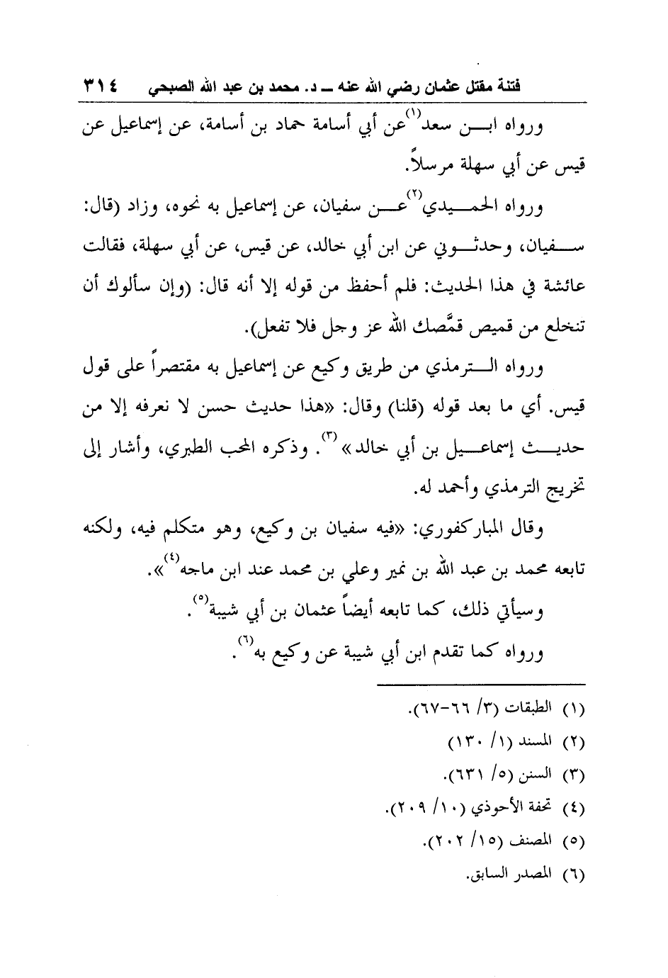 ورواه الحميدي2 عن سفيان، عن إسماعيل به نحوه، وزاد (قال: سفيان، وحدثوني عن ابن أبي خالد، عن قيس، عن أبي سهلة، فقالت عائشة في هذا الحديث: فلم أحفظ من قوله إلا أنه قال: "وإن سألوك أن تنخلع من قميص قمَّصك الله عز وجل فلا تفعل".