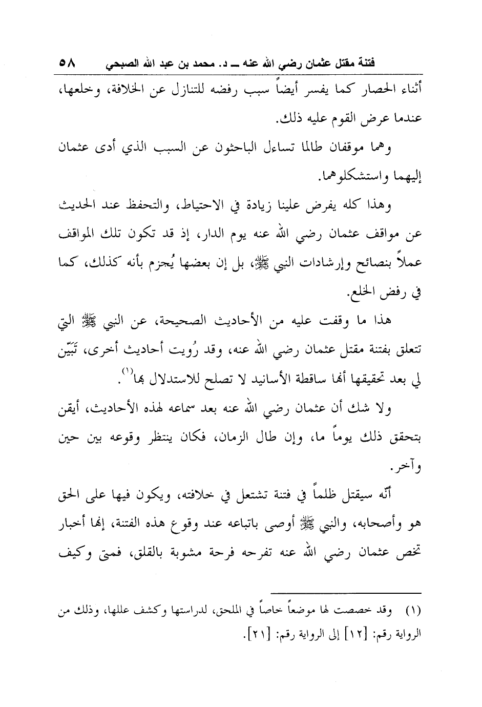 هذا ما وقفت عليه من الأحاديث الصحيحة، عن النبي صلى الله عليه وسلم التي تتعلق بفتنة مقتل عثمان رضي الله عنه، وقد رُويت أحاديث أخرى، تَبَيّن لي بعد تحقيقها أنها ساقطة الأسانيد لا تصلح للاستدلال بها1.