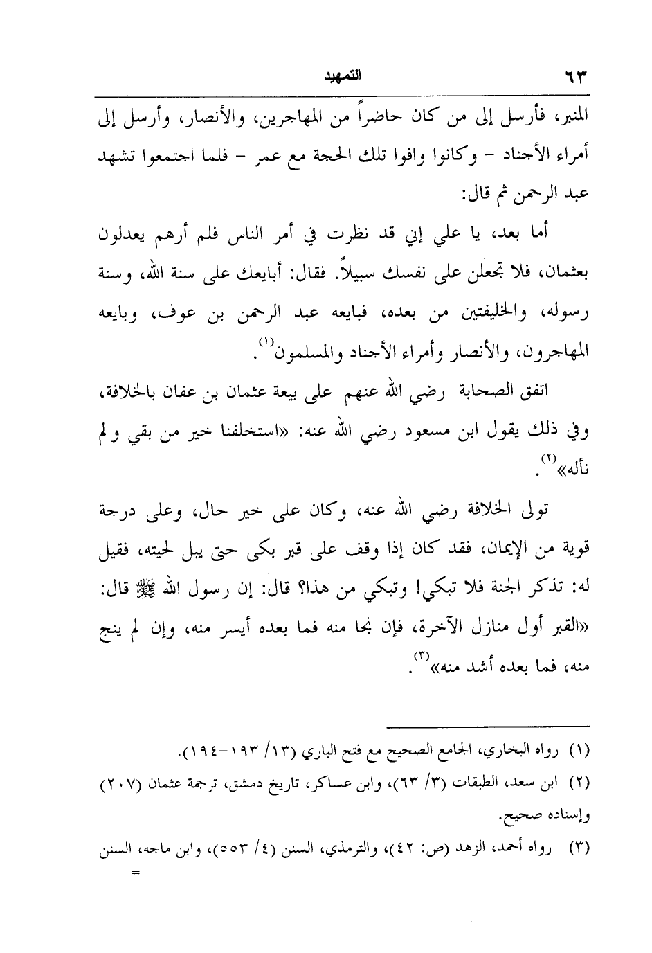 2 ابن سعد، الطبقات (3/ 63) ، وابن عساكر، تاريخ دمشق، ترجمة عثمان (207) وإسناده صحيح.