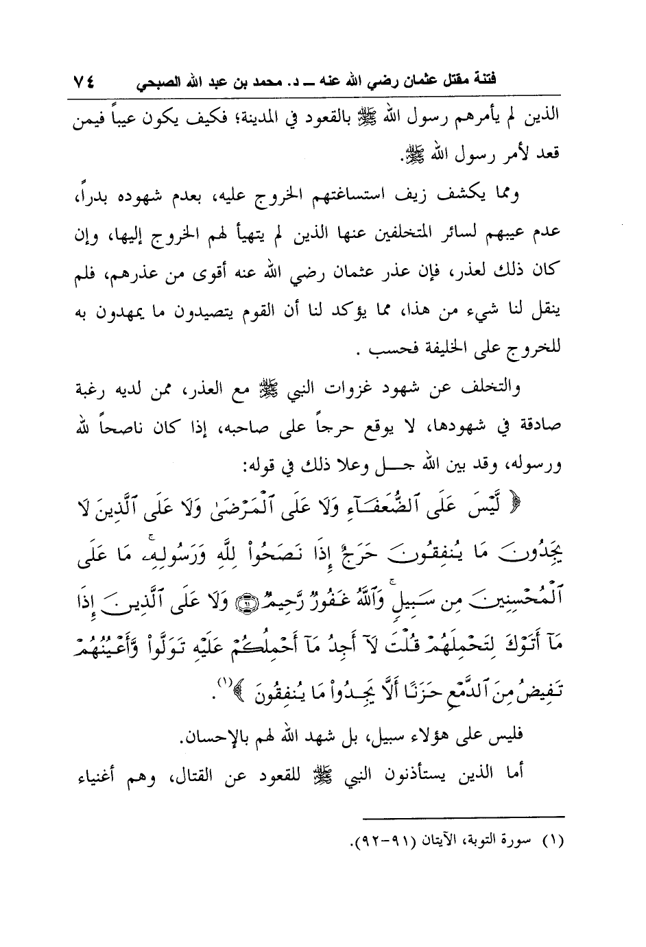 1 سورة التوبة، الآيتان (91-92) .