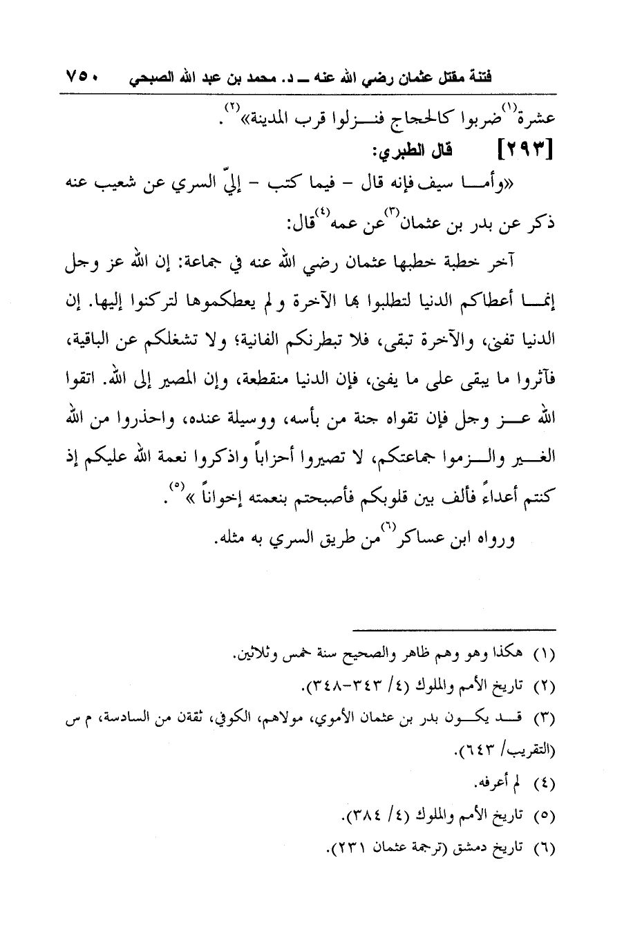 6 تاريخ دمشق (ترجمة عثمان 231) .