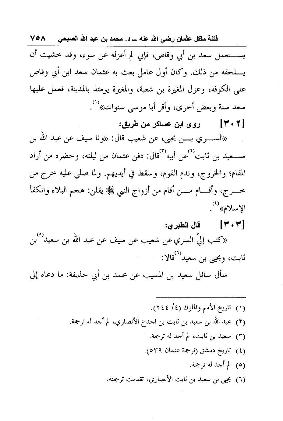 4 تاريخ دمشق (ترجمة عثمان 539) .