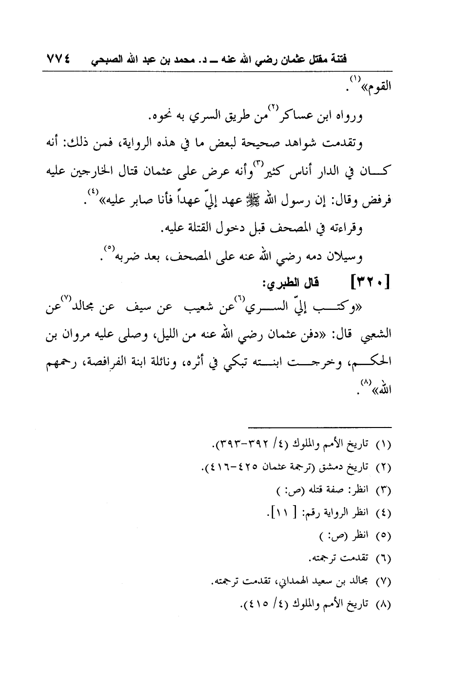 8 تاريخ الأمم والملوك (4/ 415) .