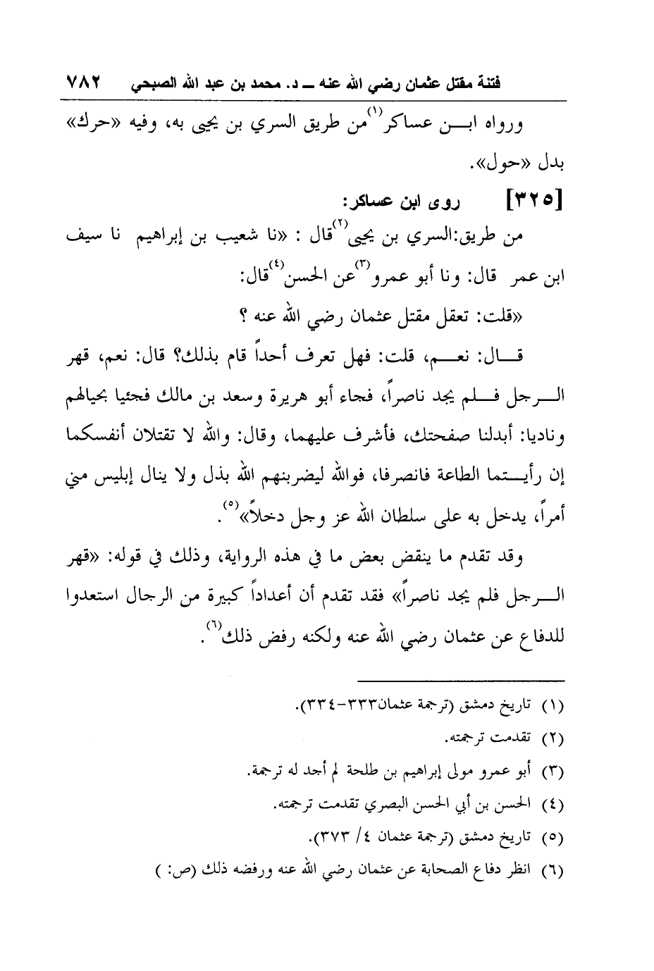 5 تاريخ دمشق (ترجمة عثمان 4/ 373) .