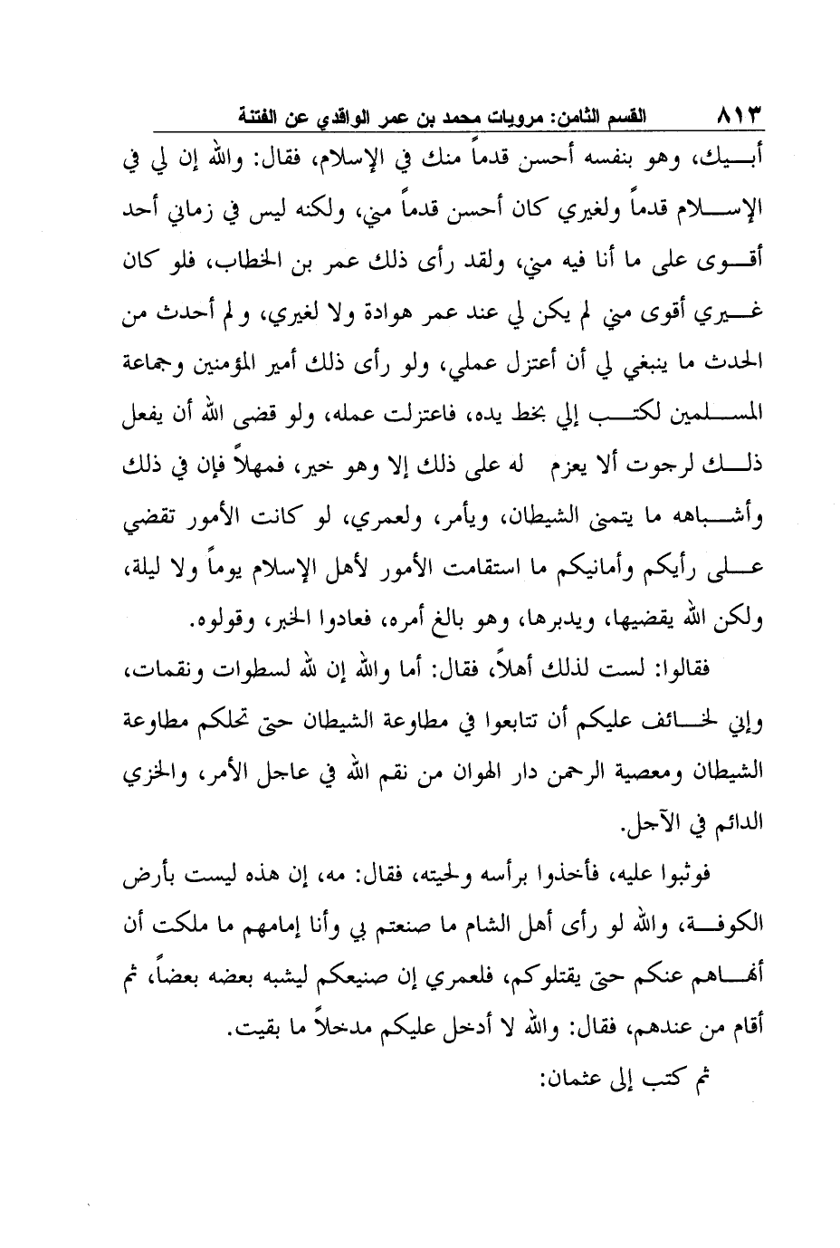 ثم كتب إلى عثمان: