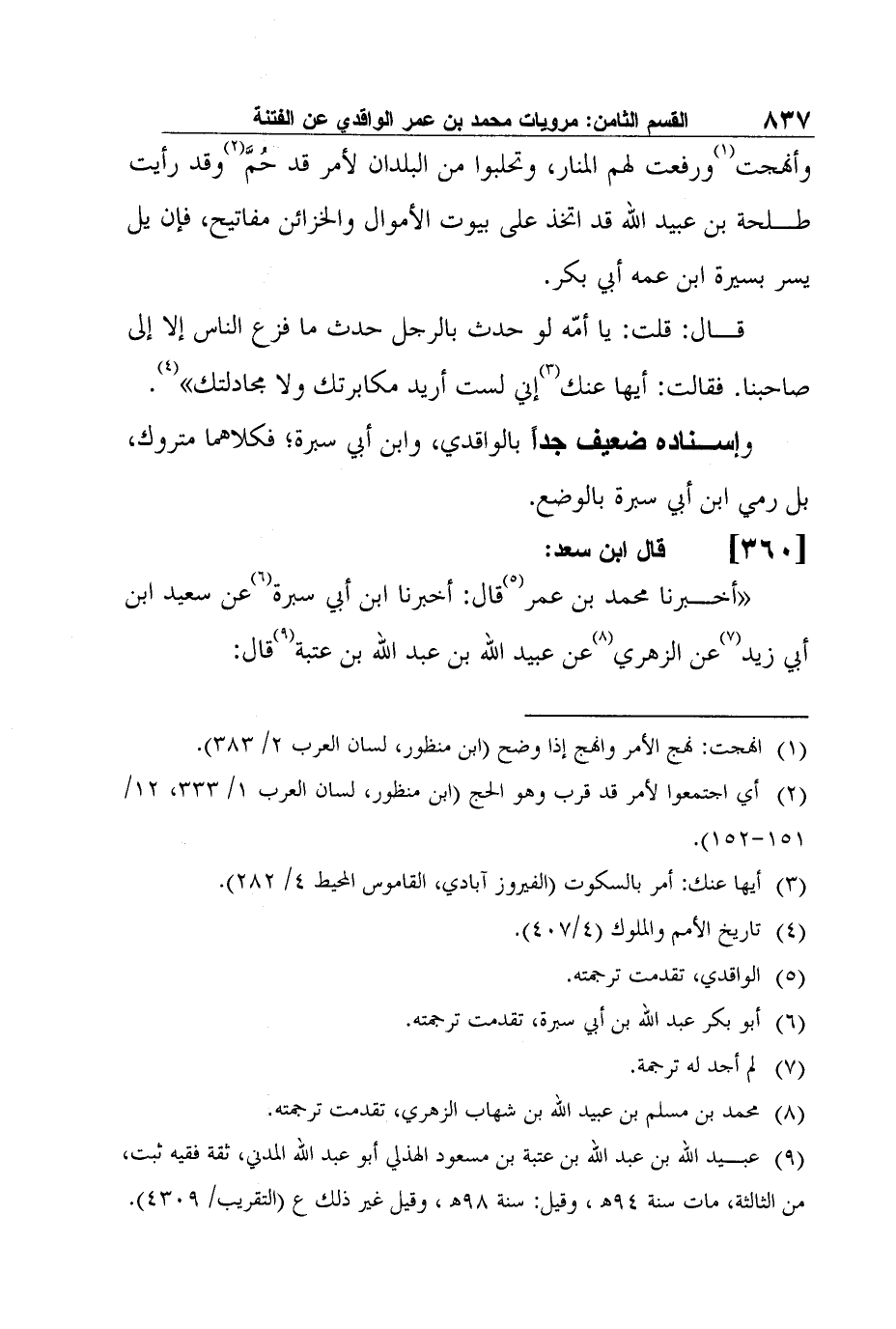 33- قال ابن سعد: أخبرنا محمد بن عمر5 قال: أخبرنا ابن أبي سبرة6 عن سعيد ابن أبي زيد7 عن الزهري8 عن عبيد الله بن عبد الله بن عتبة9 قال: