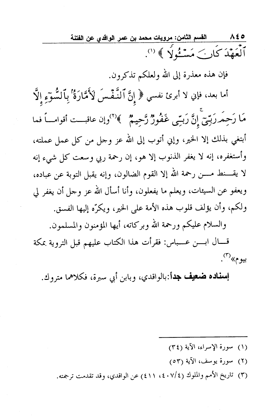3 تاريخ الأمم والملوك (4/407، 411) عن الواقدي، وقد تقدمت ترجمته.