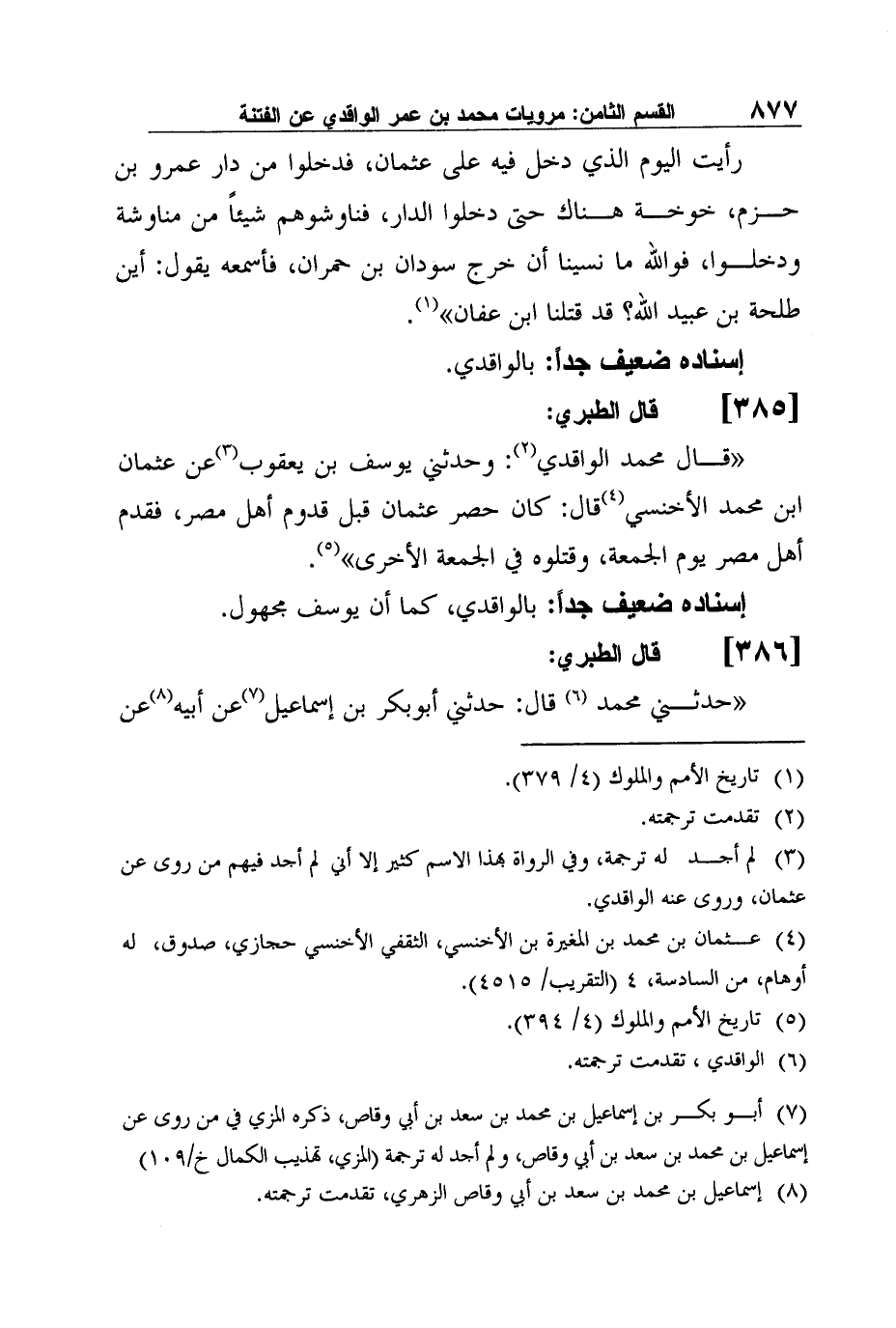 3 لم أجد له ترجمة، وفي الرواة بهذا الاسم كثير إلا أني لم أجد فيهم من روى عن عثمان، وروى عنه الواقدي.