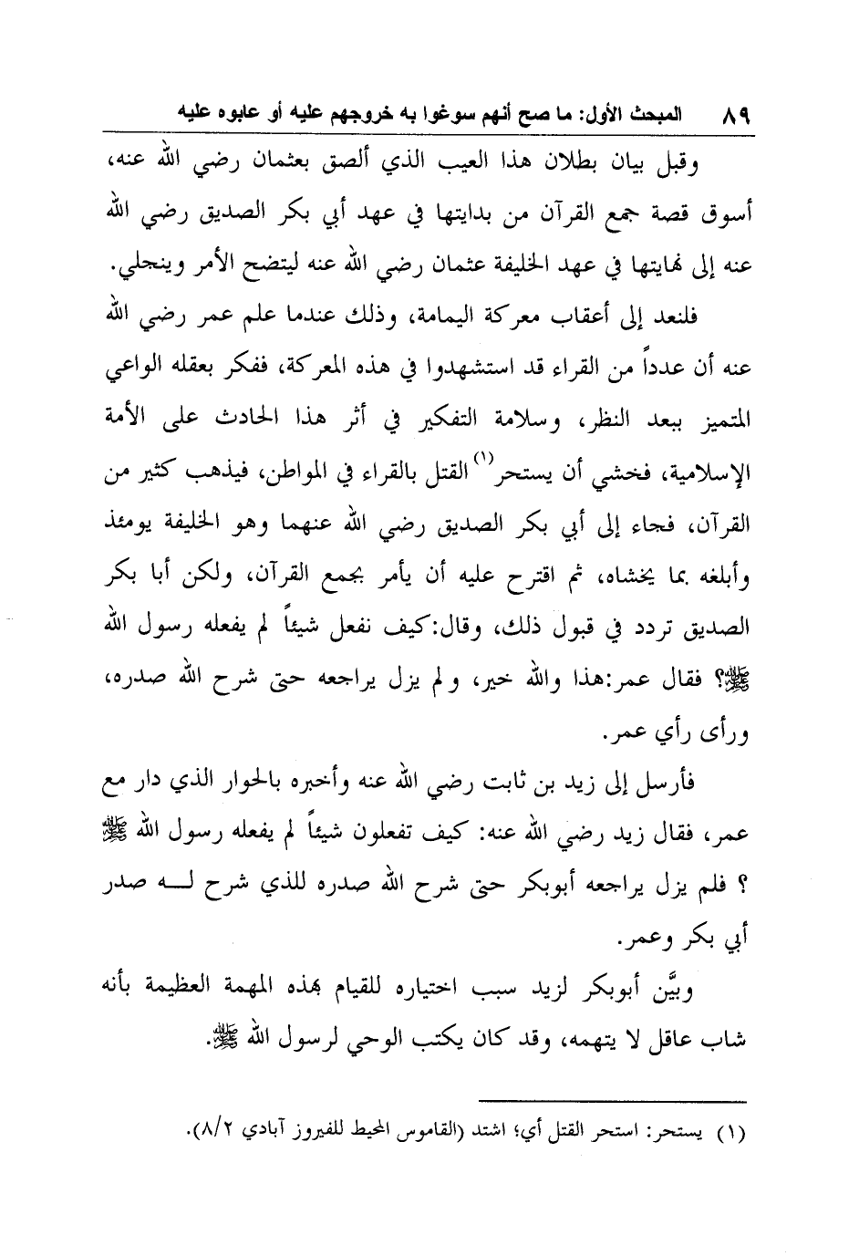 فأرسل إلى زيد بن ثابت رضي الله عنه وأخبره بالحوار الذي دار مع عمر، فقال زيد رضي الله عنه: كيف تفعلون شيئاً لم يفعله رسول الله صلى الله عليه وسلم؟ فلم يزل يراجعه أبوبكر حتى شرح الله صدره للذي شرح له صدر أبي بكر وعمر.