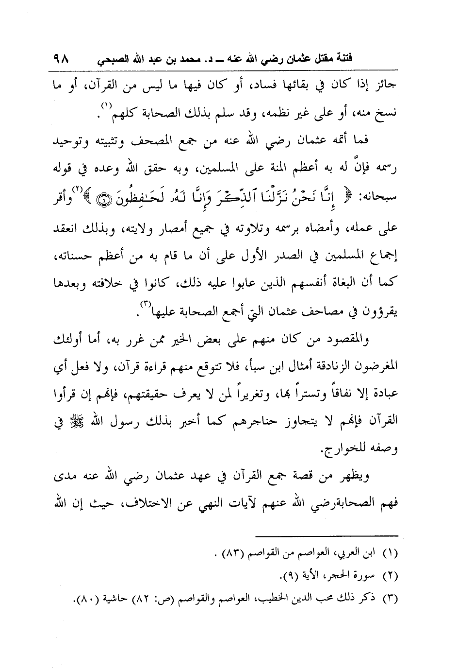 3 ذكر ذلك محب الدين الخطيب، العواصم والقواصم (ص: 82) حاشية (80) .