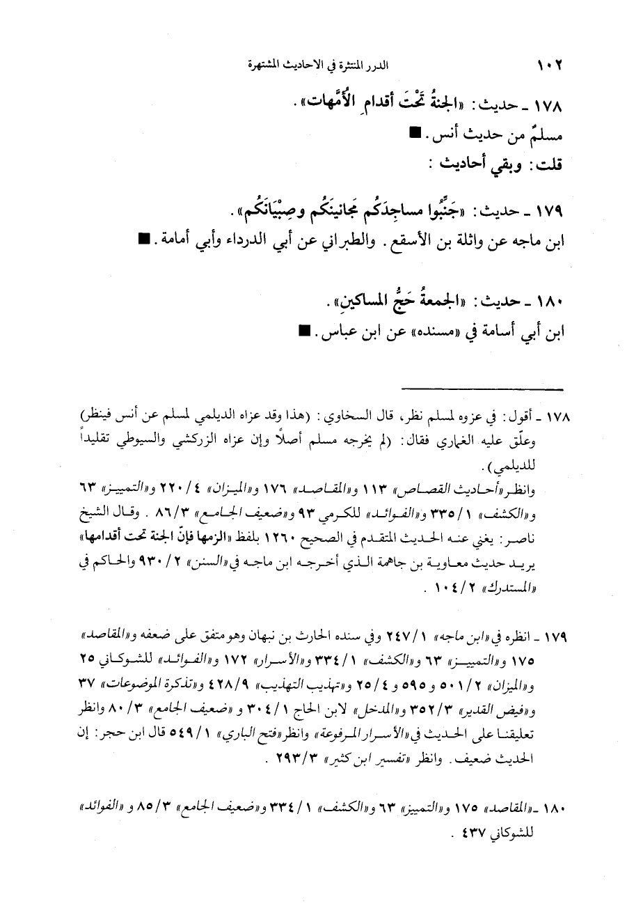 178 - (حديث) "الْجَنَّةُ تَحْتَ أَقْدَامِ الأُمَّهَاتِ" مسلم (¬1) من حديث أنس.