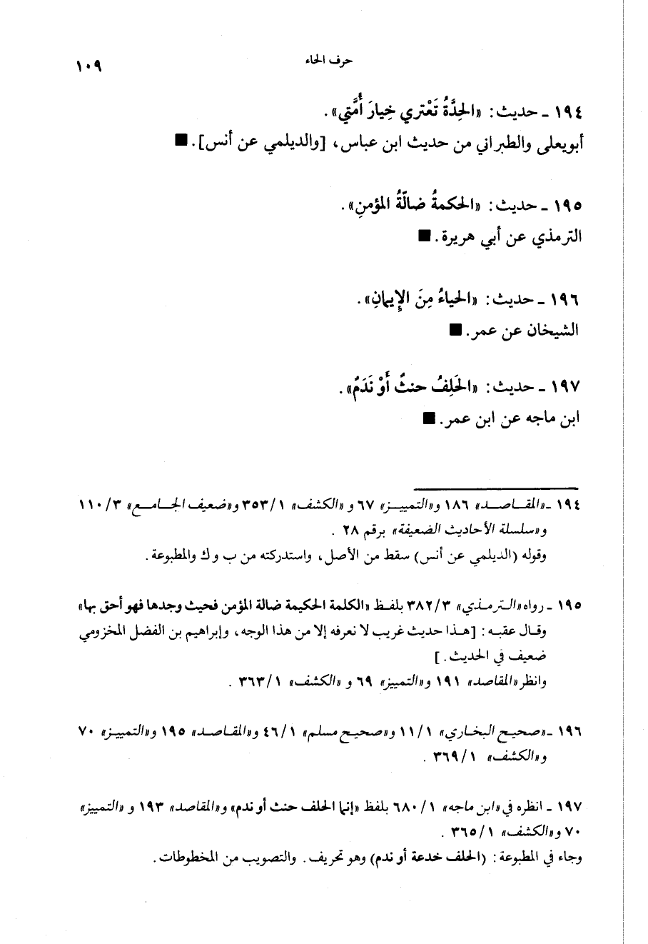 196 - (حديث) "الْحَيَاءُ مِنَ الإِيمَانِ" الشيخان عن ابن عمر.