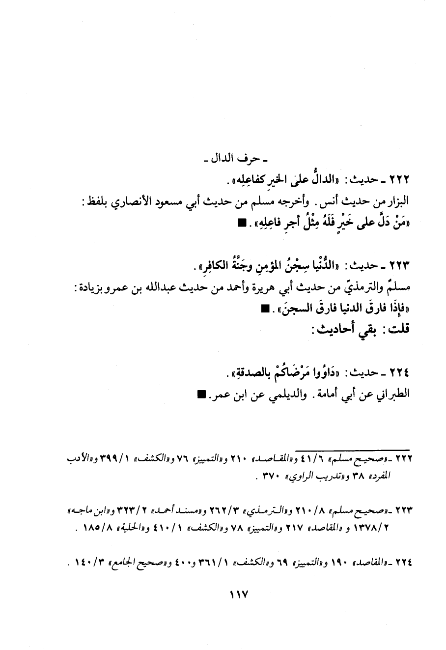 222 - (حديث) "الدَّالُّ عَلَى الْخَيْرِ كَفَاعِلِهِ" البزار من حديث أنس، وأخرجه مسلم من حديث أبي مسعود الأنصاري بلفظ: "مَنْ دَلَّ عَلَى خَيْرٍ فَلَهُ مِثْلُ أَجْرِ فَاعلِهِ".