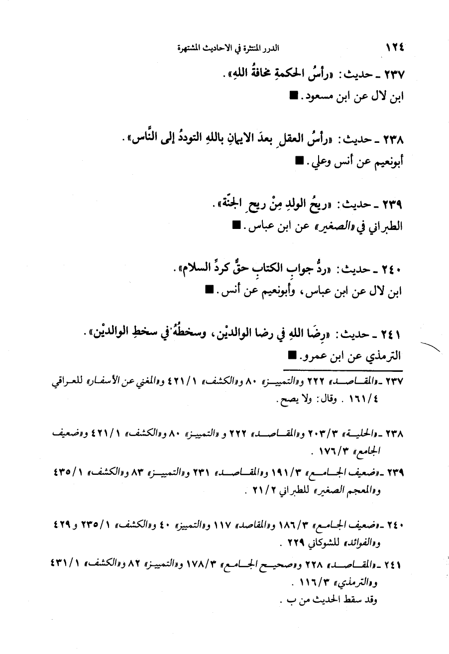 كتاب الدرر المنتثرة في الأحاديث المشتهرة