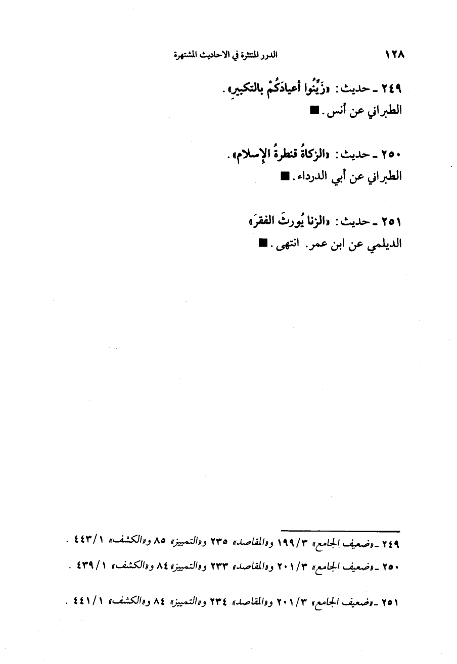 250 - (حديث) "الزَّكَاةُ قَنْطَرَةُ الإِسْلاَمِ" الطبراني عن أبي الدرداء.