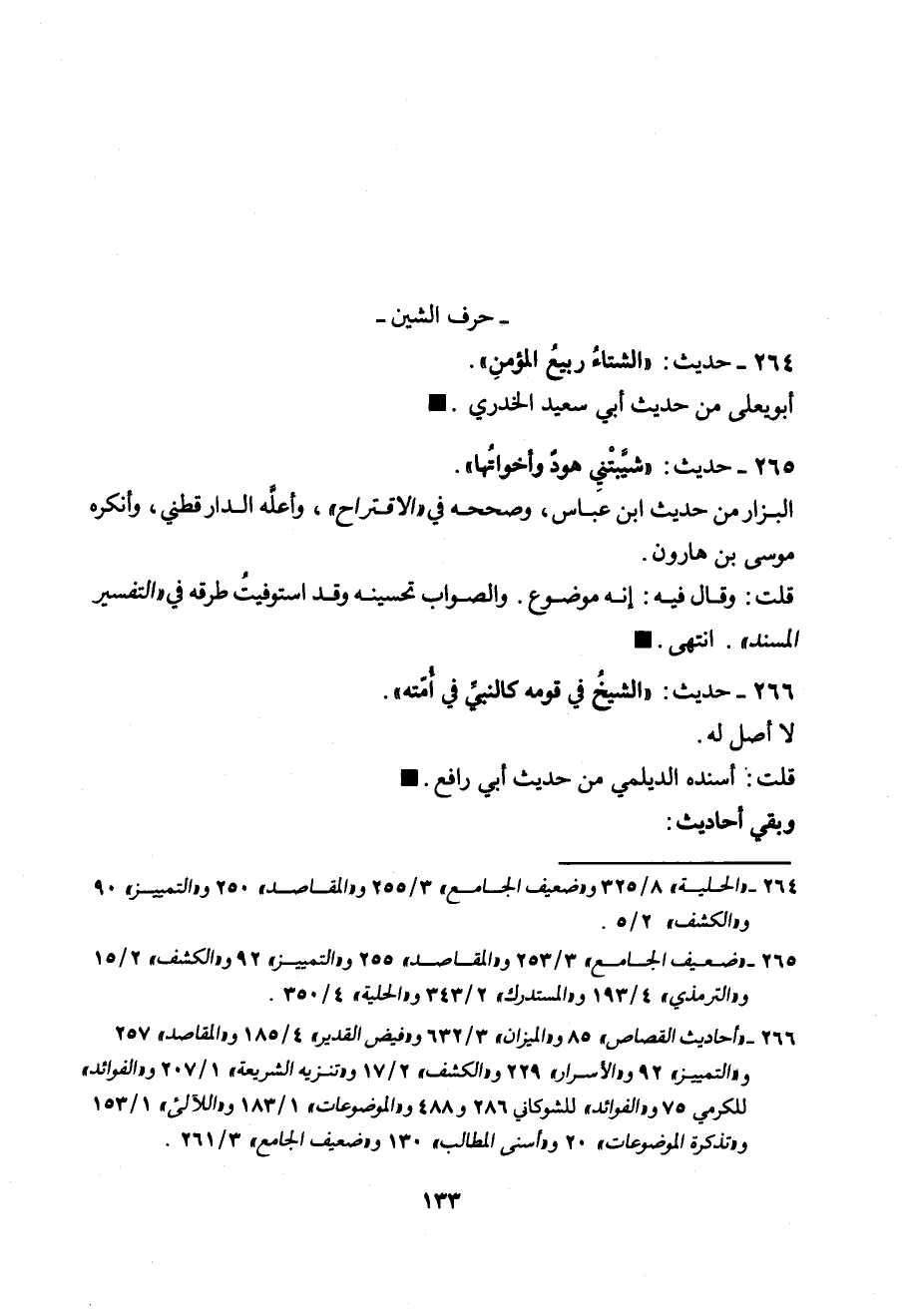265 - (حديث) "شَيَّبَتْنِي هُودٌ وَأَخَوَاتُهَا" البزار من حديث ابن عباس، وصححه في الاقتراح، وأعله الدارقطني، وأنكره موسى بن هارون.
