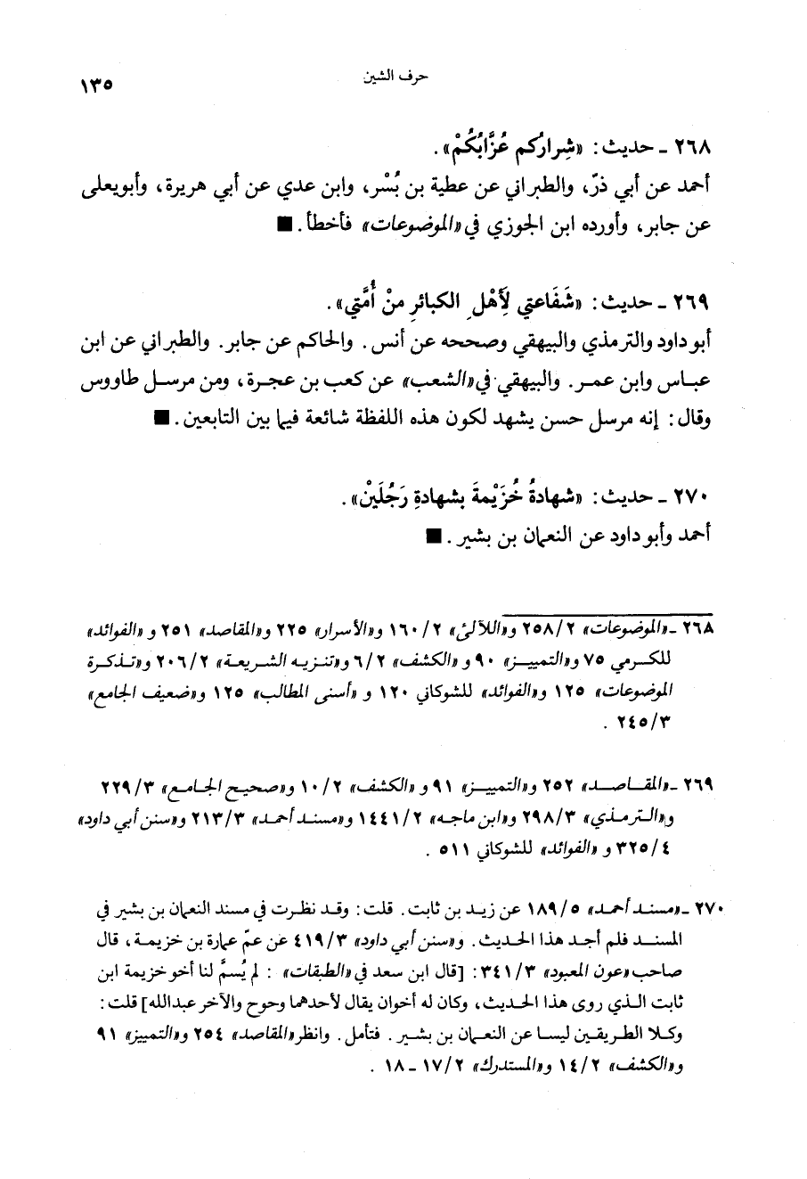 270 - (حديث) "شَهَادَةُ خُزَيْمَةَ بِشَهَادَةِ رَجُلَيْنِ" أحمد وأبو داود عن النعمان بن بشير.